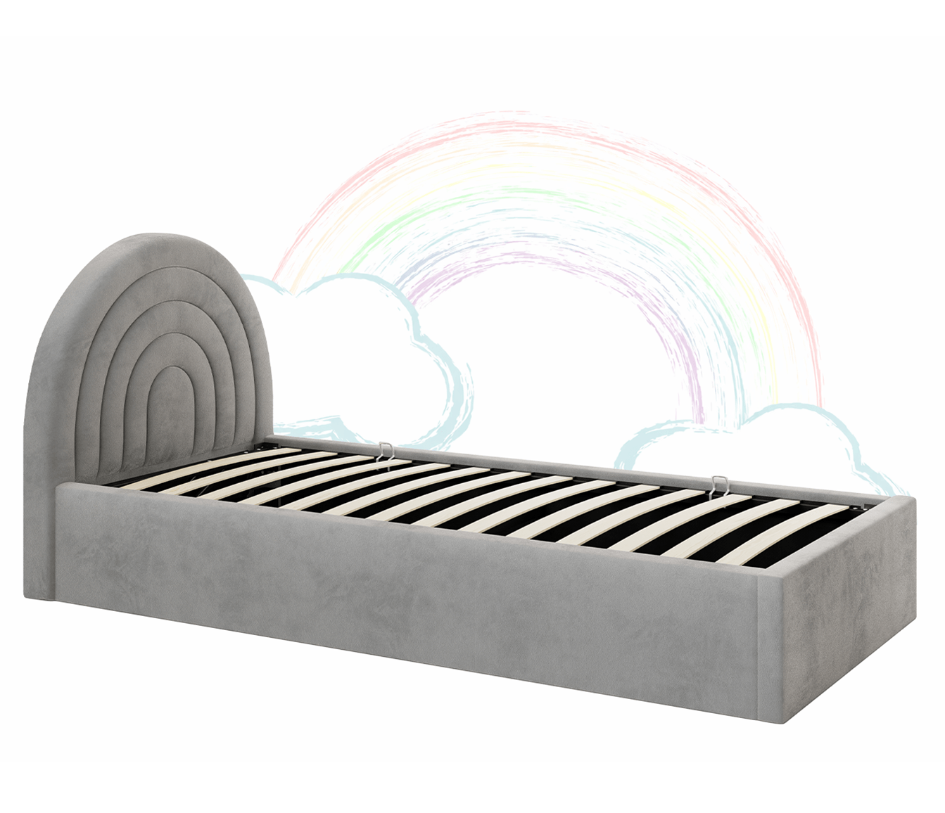 Čalúnená detská posteľ s úložným priestorom 90x200 s roštom, Šedá Bluvel 03 Kids Line 5 Dúha