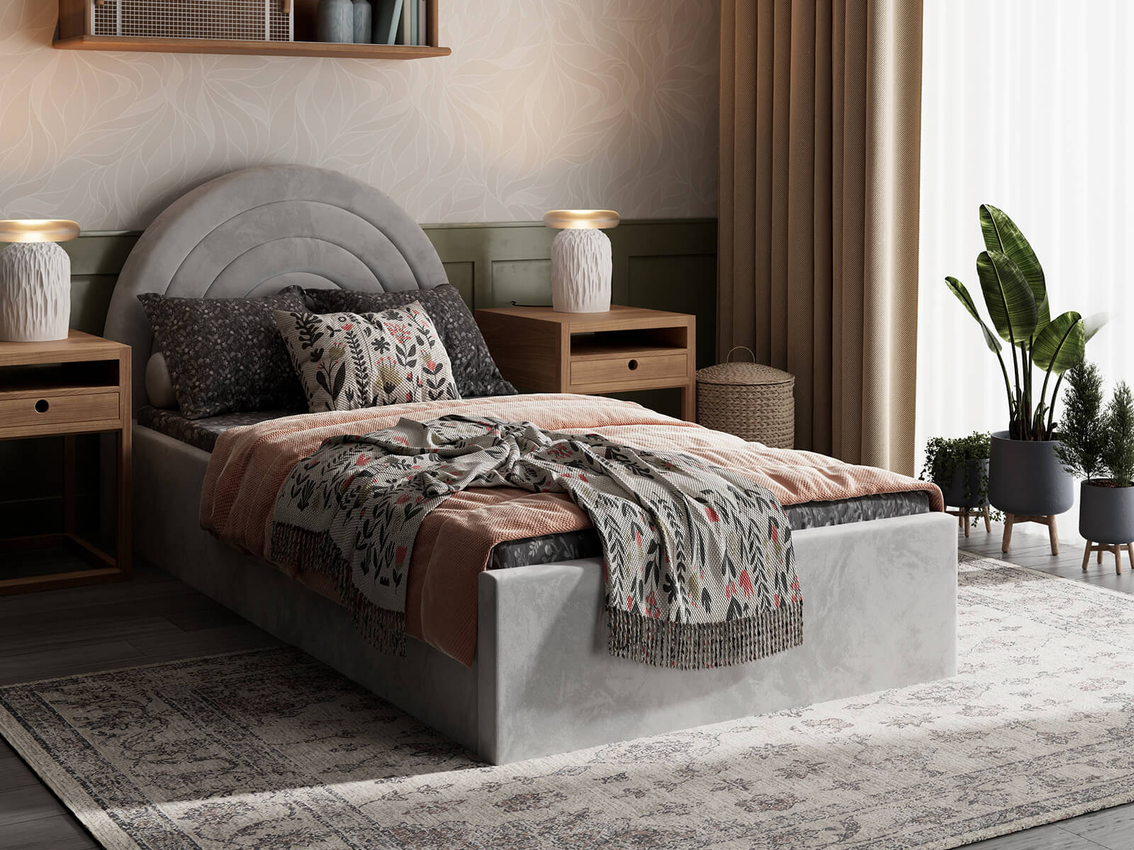 Viď popis produktuVytvorte jedinečný priestor na spánok a oddych pre svoje dieťa vďaka čalúnenej posteli Kids Line 5. Nie je to len pohodlné miesto na spanie, ale aj štýlový prvok vybavenia detskej izby. Charakteristické čelo postele v tvare dúhy dodáva interiéru útulný a moderný vzhľad. Posteľ je potiahnutá látkou Bluvel (velúr) od renomovanej spoločnosti Fabb, ktorá je mäkká na dotyk, odolná a vhodná na každodenné používanie.