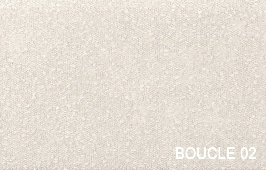 BOUCLÉ Jeho povrch je pokrytý drobnými slučkami, ktoré mu dodávajú jedinečný trojrozmerný vzhľad. Charakteristická buklé väzba dodáva látke prirodzený, mäkký efekt ovčej kože a zároveň ju robí vysoko odolnou voči oderu. Je to vynikajúca voľba pre ľudí, ktorí si cenia sofistikovaný štýl a odolnosť.