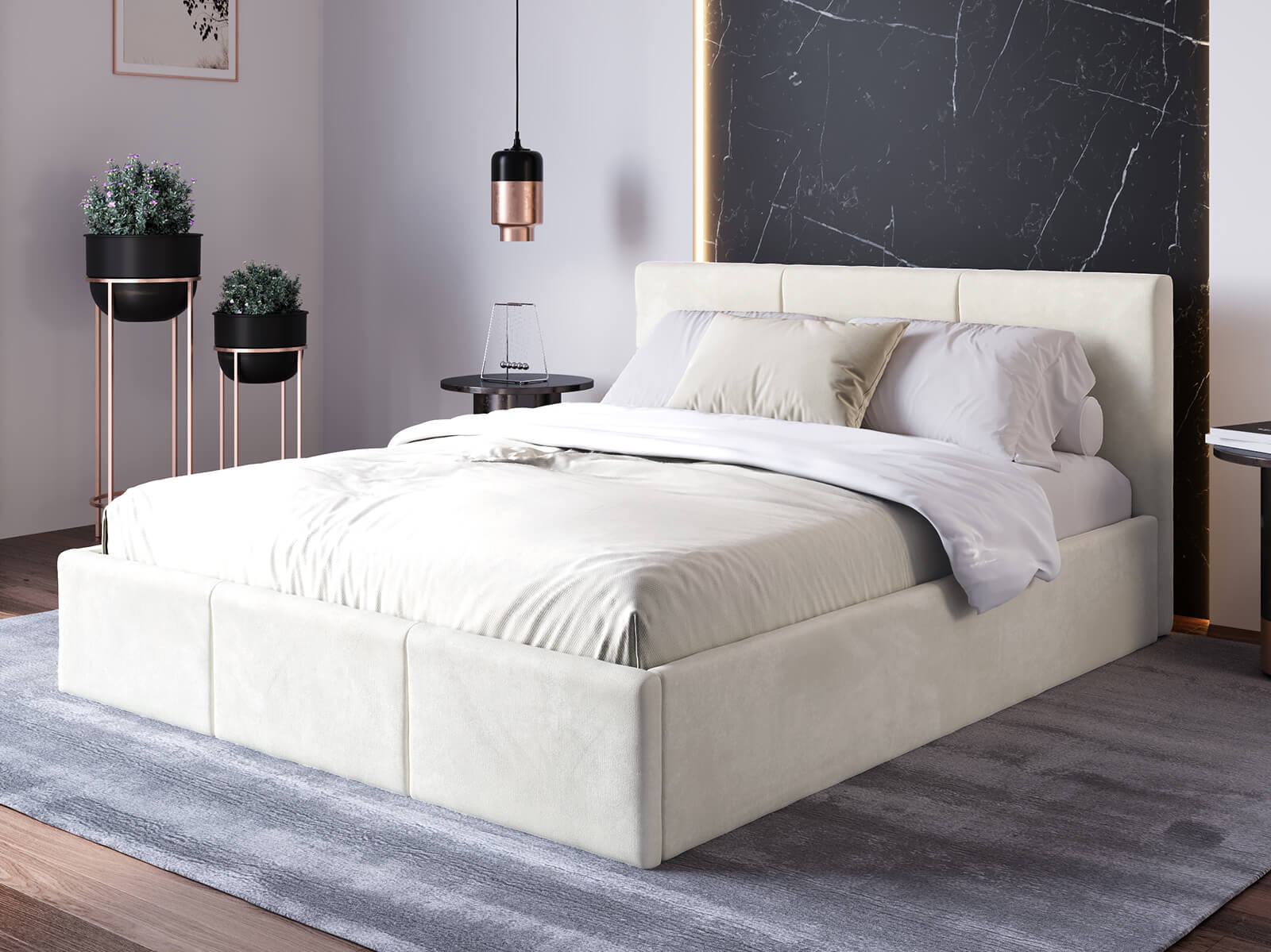 Jedným z kľúčových prvkov našej postele je kvalitná Béžová zamatová látka. Tento materiál je nielen príjemný na dotyk, ale aj extrémne odolný a ľahko sa čistí. Dodá posteli eleganciu a luxus.
