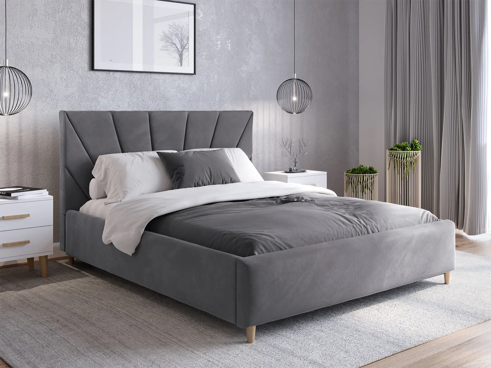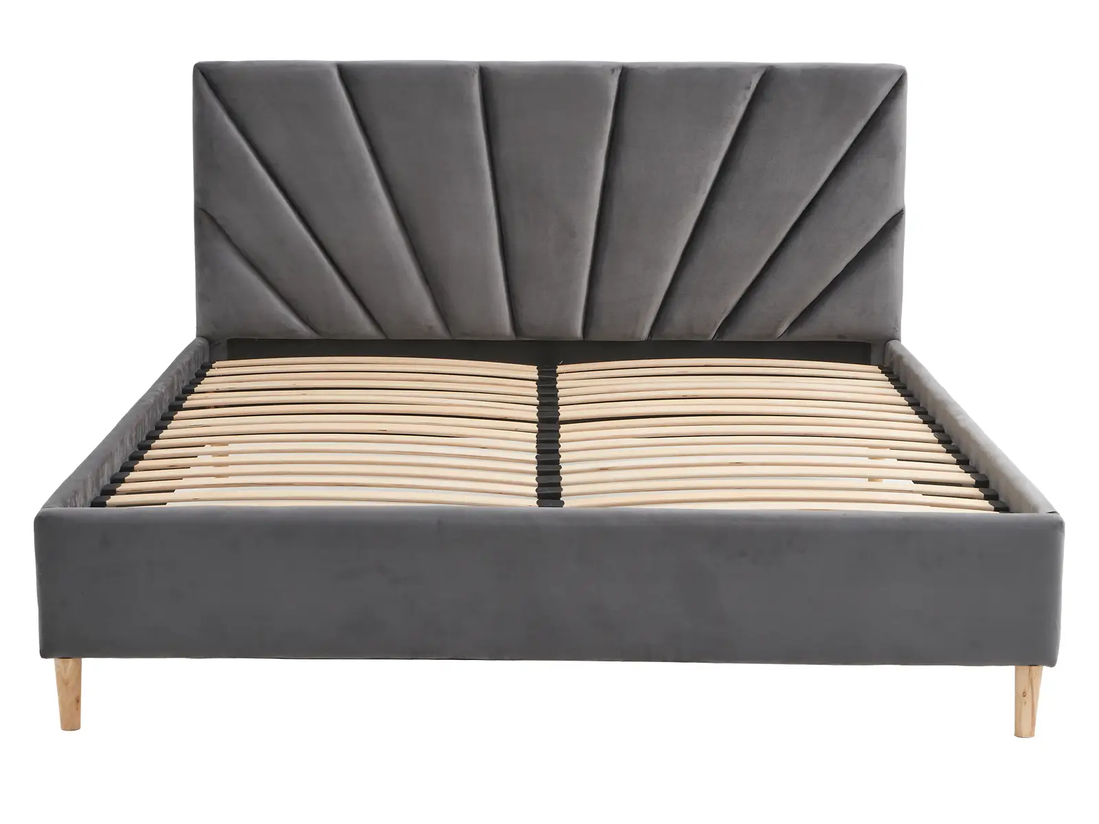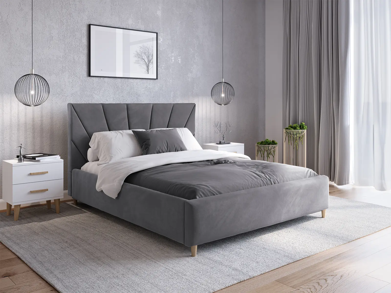 Velúrová poťahová látka je nielen estetickou voľbou, ale predovšetkým zárukou jemnosti a výnimočnej elegancie. Farba nábytku dokonale ladí s rôznymi interiérmi a vejárové prešívanie v čele dodáva posteli ďalší charakter. Drevené nohy postele vo svetlom odtieni navyše jemne zdôrazňujú jej jedinečný štýl.