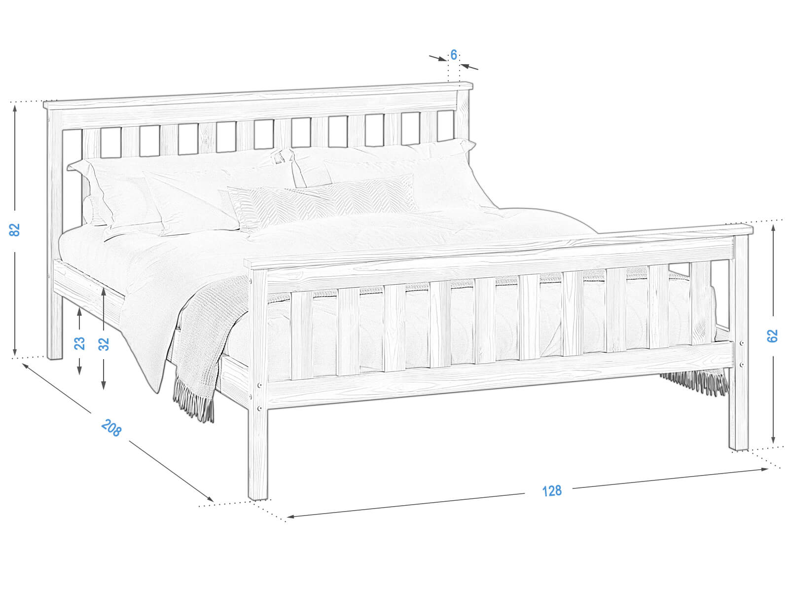 Drevená borovica posteľ Naxter 120x200