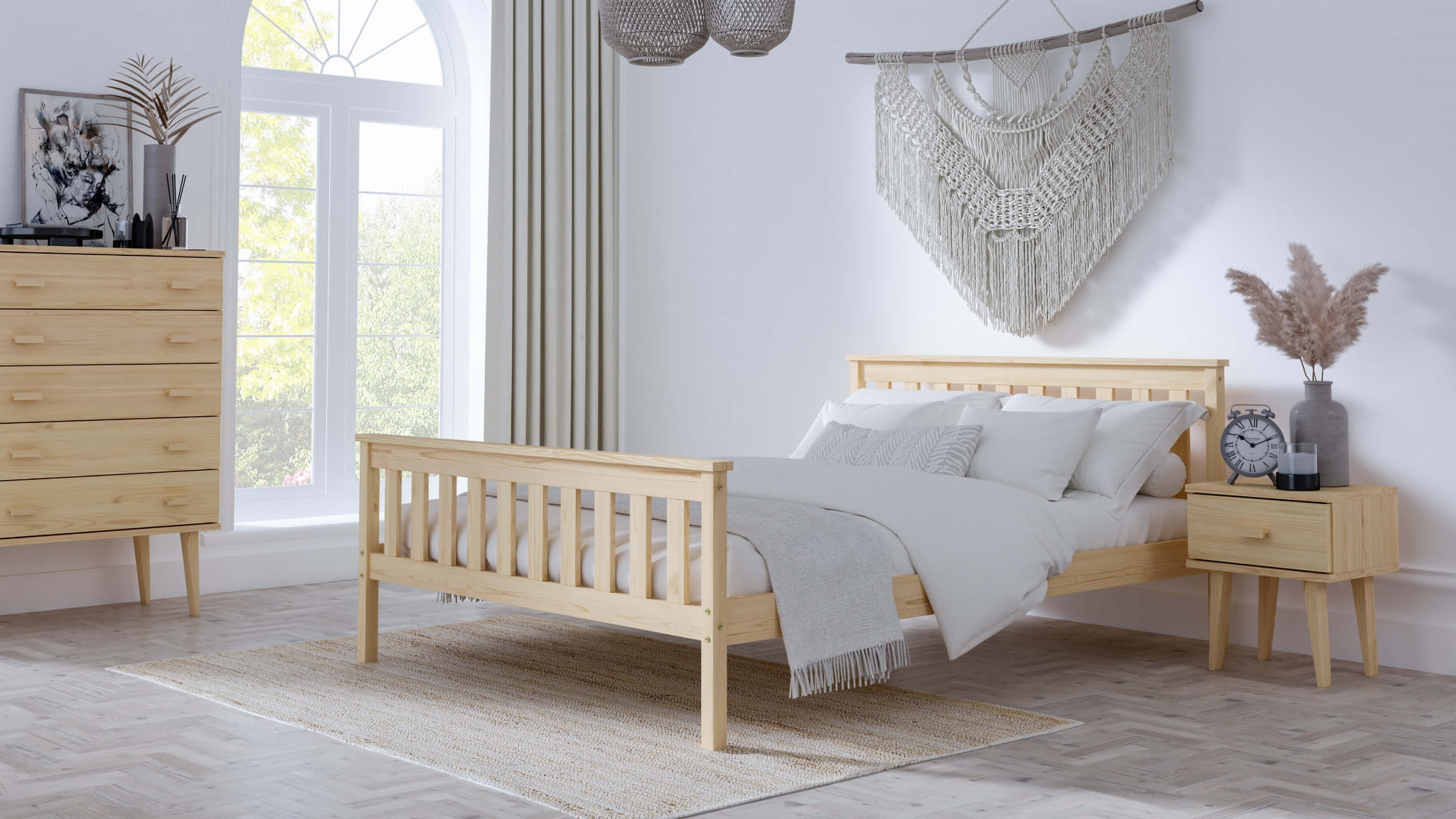 Borovicová posteľ je vhodná pre klasické interiéry alebo pre kombináciu s modernými štýlmi. Posteľ od šírky 120x200 obsahuje dve piate nohy navyše, ktoré sú určené do páru. Biele postele sa už dlhšiu dobu tešia veľkému záujmu zákazníkov. Model Naxter v sebe spája vzácnosť prírodného dreva a klasickú, univerzálnu farbu.