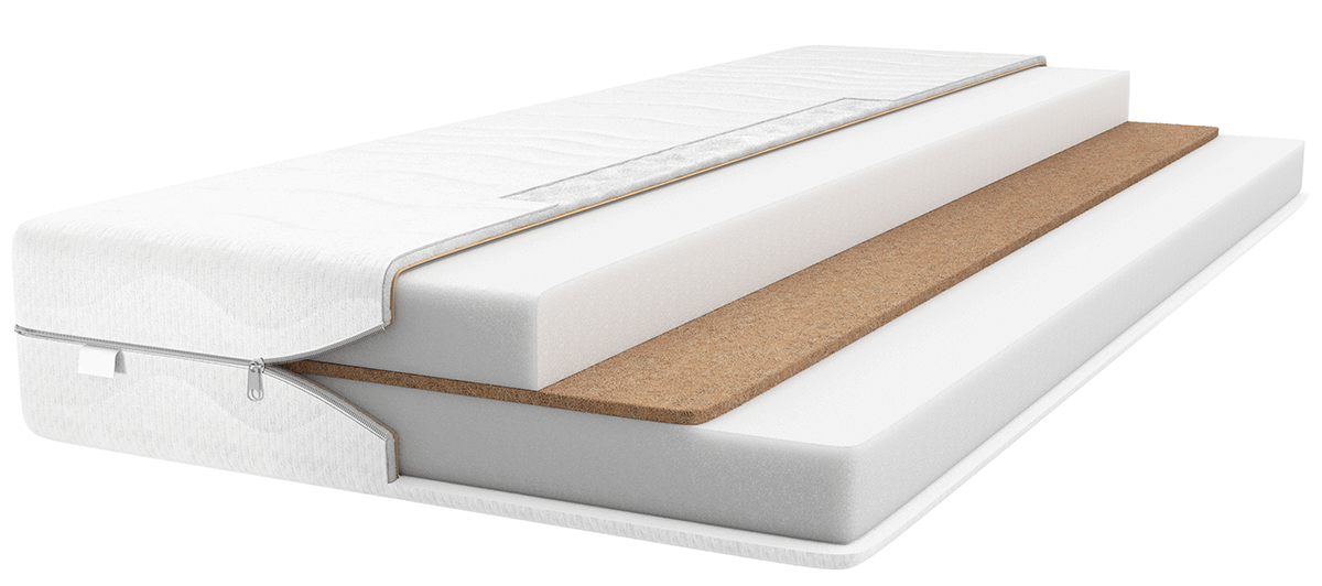 Dve vrstvy polyuretánovej peny oddelené vrstvou kokosovej rohože. Kokosové vlákna zvyšujú tvrdosť a stabilitu a zabezpečujú správnu oporu pre chrbticu. Vybavený mäkkým poťahom so zipsom, ktorý možno jednoducho zložiť a vyprať. Matrac s výškou 8 cm. Hipoalergénne materiály.