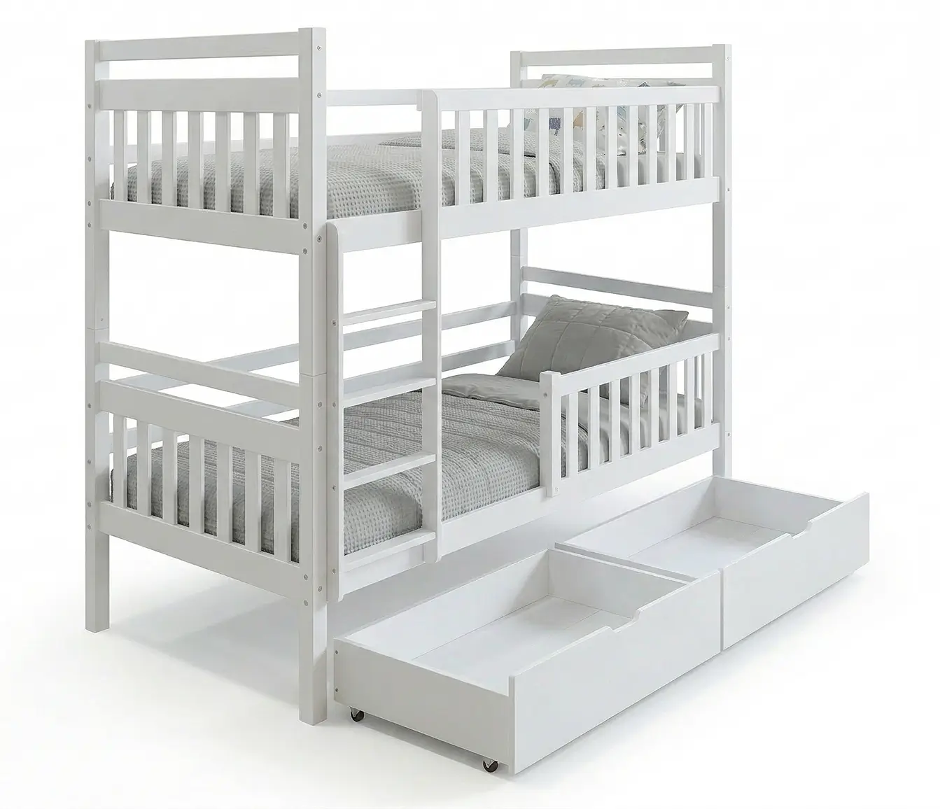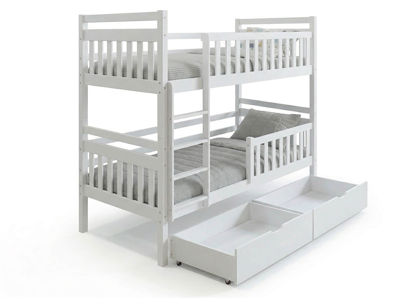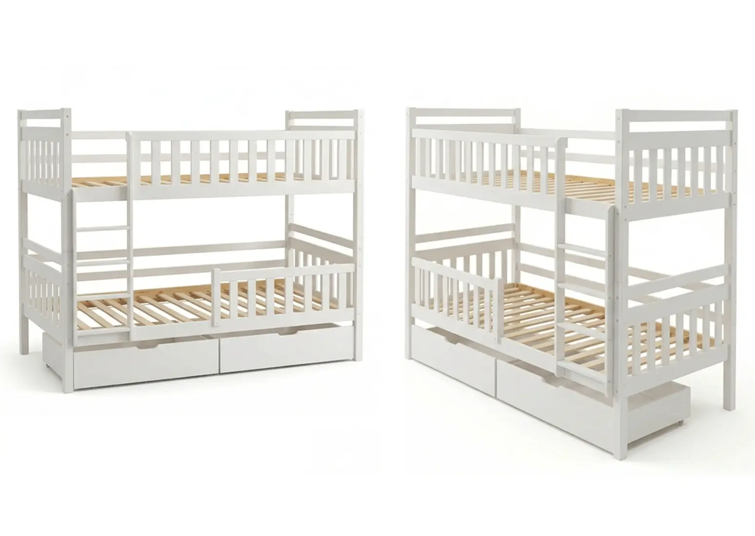 Drevená poschodová posteľ so zásuvkami 90x200cm P4S biela