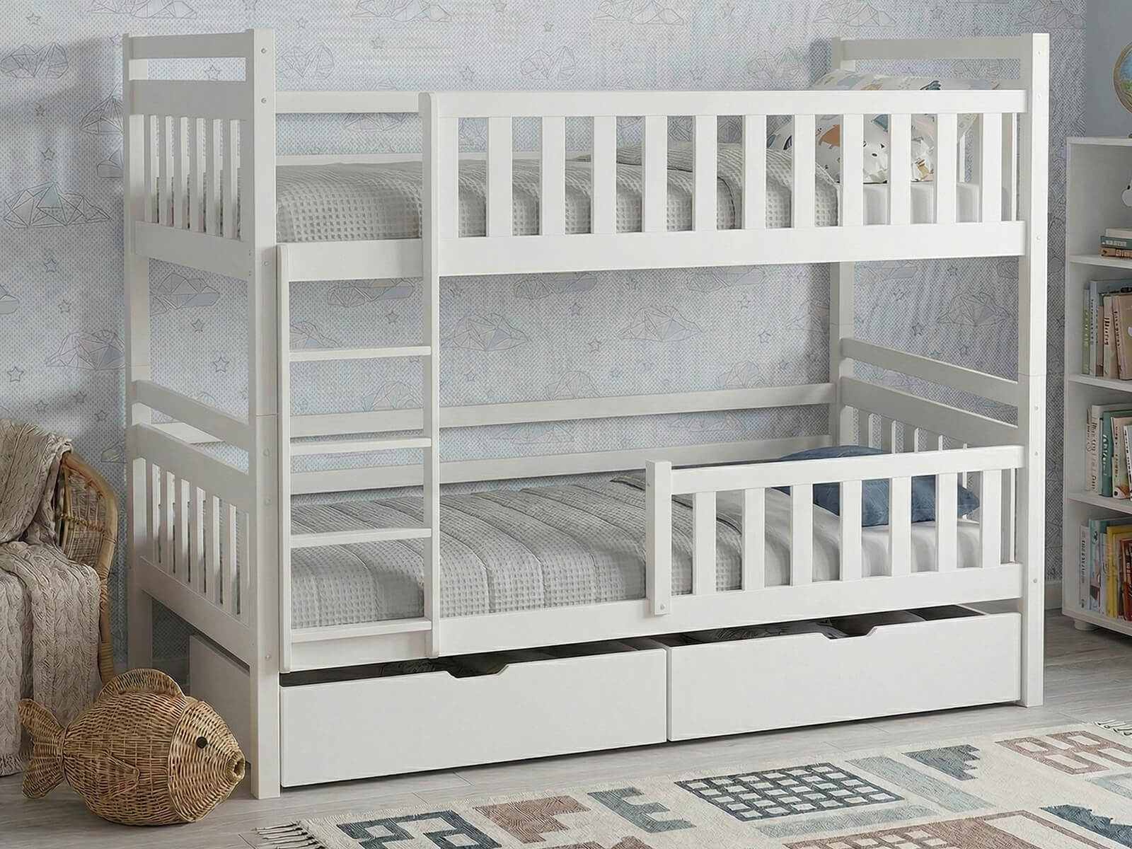 Dve miesta na spanie – Konštrukcia umožňuje pohodlné používanie pre dve deti alebo súrodencov. Funkčnosť v škandinávskom štýle umožňuje maximálne využiť priestor izby.