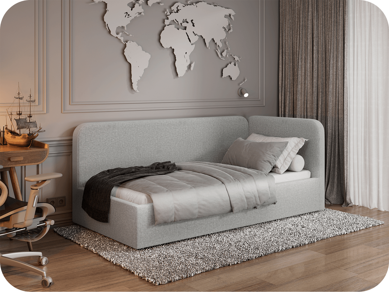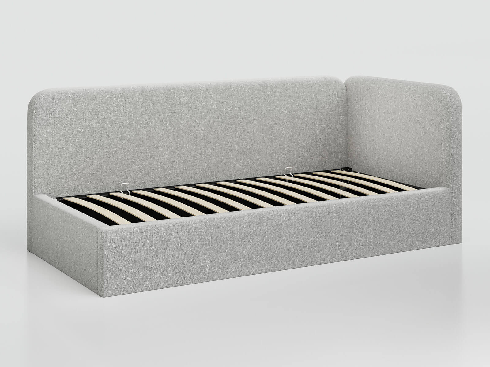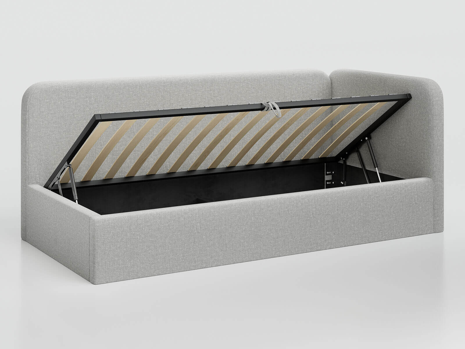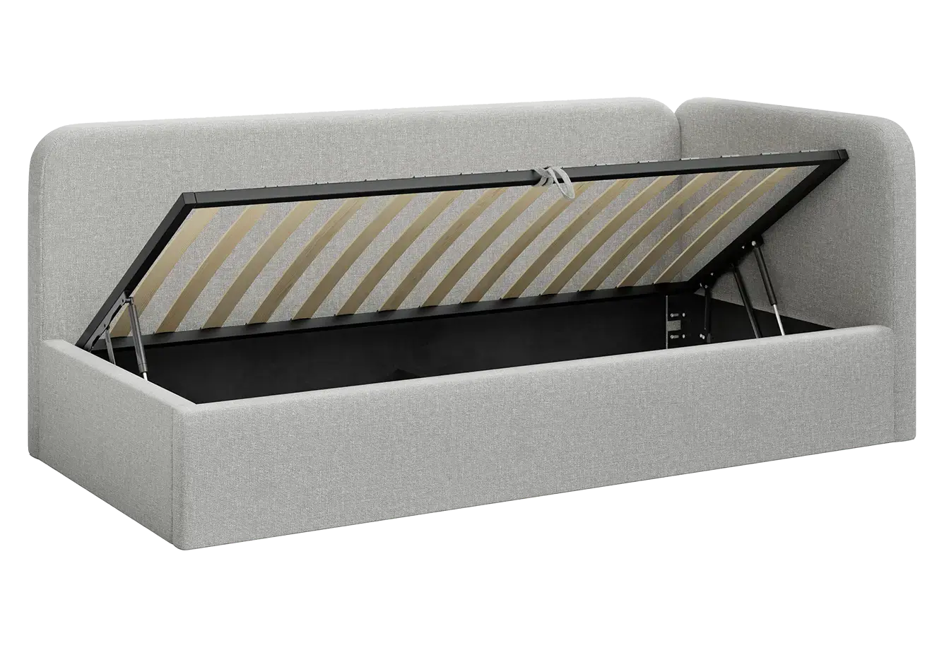 Je to odolná a estetická čalúnená jednolôžková posteľ s úložným priestorom na posteľnú bielizeň, vytvorená s dôrazom na každodenné pohodlie a maximálne využitie priestoru.