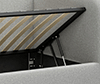 Zdvíhací rošt – Stabilný kovový rám a zdvíhací mechanizmus zabezpečujú pohodlný prístup k priestrannému úložnému priestoru na posteľnú bielizeň.