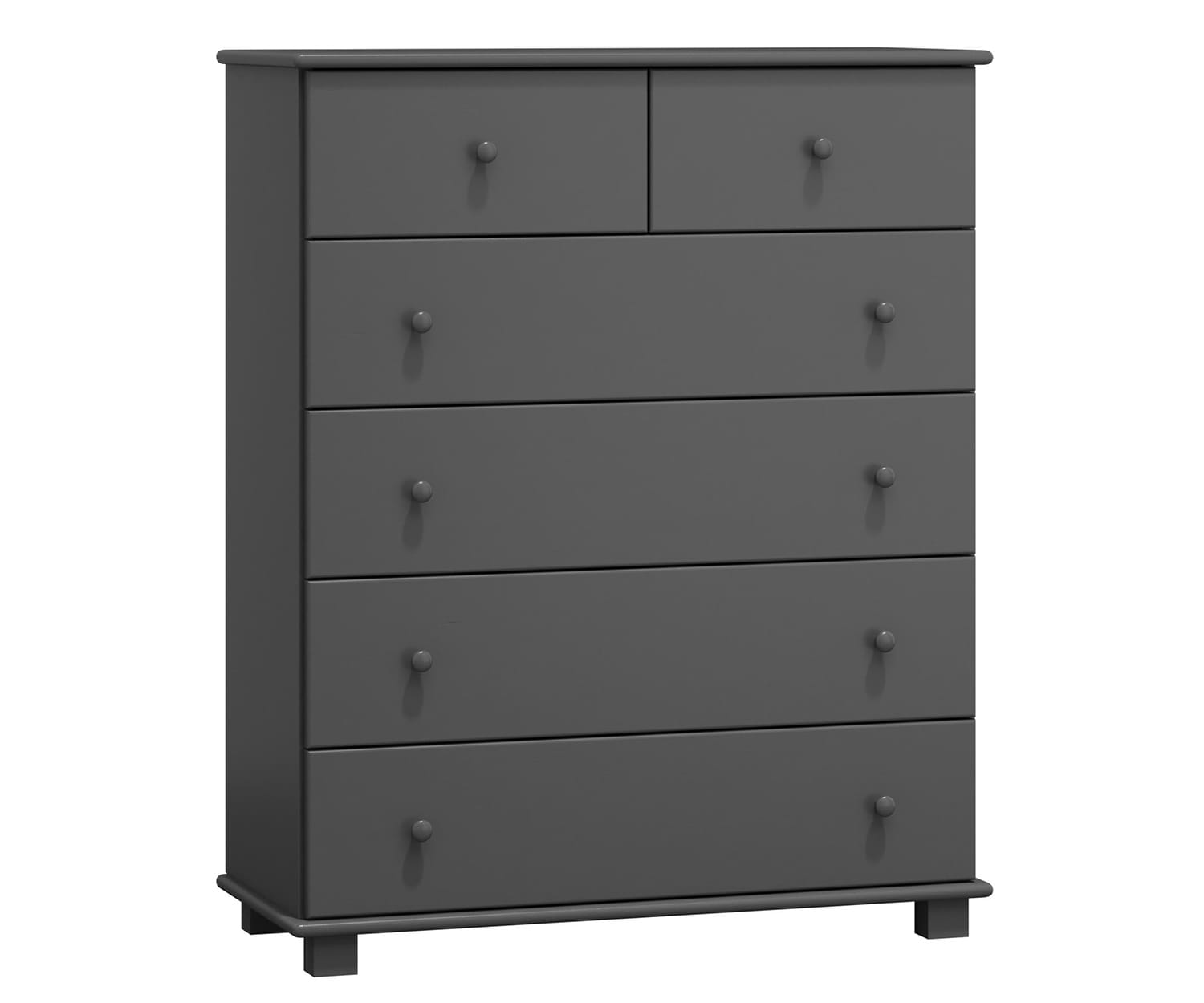Komoda č10 šedá hloubka 42 je zhotovena z borovicového dřeva, díky čemu má odolnou konstrukci. Ergonomický tvar umožní uschovat věci a udržovat pořádek. Díky kolejnicím se zásuvky vysunují velmi lehce a přispívají tak k pohodlnému používání. Svým minimalistickým designem se hodí do klasického i moderního interiéru. Kus nábytku z přírodního dřeva působí jako vkusný dekorační prvek. Nábytek je vyroben z borovicového dřeva nejlepší kvality a natřen 3 vrstvami ekologického laku. Jako jedni z mála používáme při výrobě laky, které mají certifikát Státní hygienické stanice. Laky, které používáme, jsou schváleny pro použití na předmětech, s kterými přicházejí do styku děti (shoda s normou DIN EN 71, č. 3). Výrobek je dodáván v balících a je určen pro samostatnou montáž. |