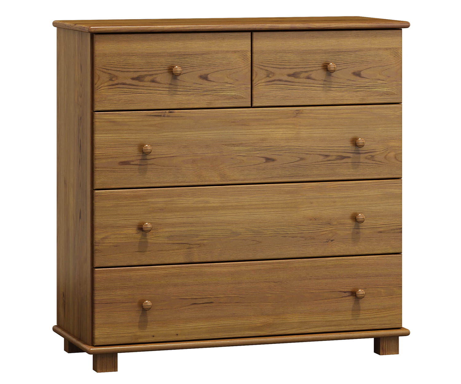 Komoda 5s hloubka 47 je zhotovena z borovicového dřeva, díky čemu má odolnou konstrukci. Ergonomický tvar umožní uschovat věci a udržovat pořádek. Díky kolejnicím se zásuvky vysunují velmi lehce a přispívají tak k pohodlnému používání. Svým minimalistickým designem se hodí do klasického i moderního interiéru. Kus nábytku z přírodního dřeva působí jako vkusný dekorační prvek. Nábytek je vyroben z borovicového dřeva nejlepší kvality a natřen 3 vrstvami ekologického laku. Jako jedni z mála používáme při výrobě laky, které mají certifikát Státní hygienické stanice. Laky, které používáme, jsou schváleny pro použití na předmětech, s kterými přicházejí do styku děti (shoda s normou DIN EN 71, č. 3). Výrobek je dodáván v balících a je určen pro samostatnou montáž. |