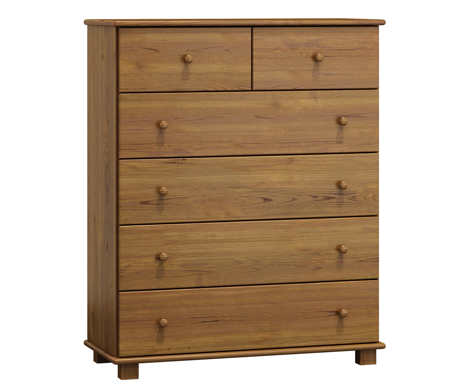 Komoda č10 hloubka 42 je zhotovena z borovicového dřeva, díky čemu má odolnou konstrukci. Ergonomický tvar umožní uschovat věci a udržovat pořádek. Díky kolejnicím se zásuvky vysunují velmi lehce a přispívají tak k pohodlnému používání. Svým minimalistickým designem se hodí do klasického i moderního interiéru. Kus nábytku z přírodního dřeva působí jako vkusný dekorační prvek. Nábytek je vyroben z borovicového dřeva nejlepší kvality a natřen 3 vrstvami ekologického laku. Jako jedni z mála používáme při výrobě laky, které mají certifikát Státní hygienické stanice. Laky, které používáme, jsou schváleny pro použití na předmětech, s kterými přicházejí do styku děti (shoda s normou DIN EN 71, č. 3). Výrobek je dodáván v balících a je určen pro samostatnou montáž. |