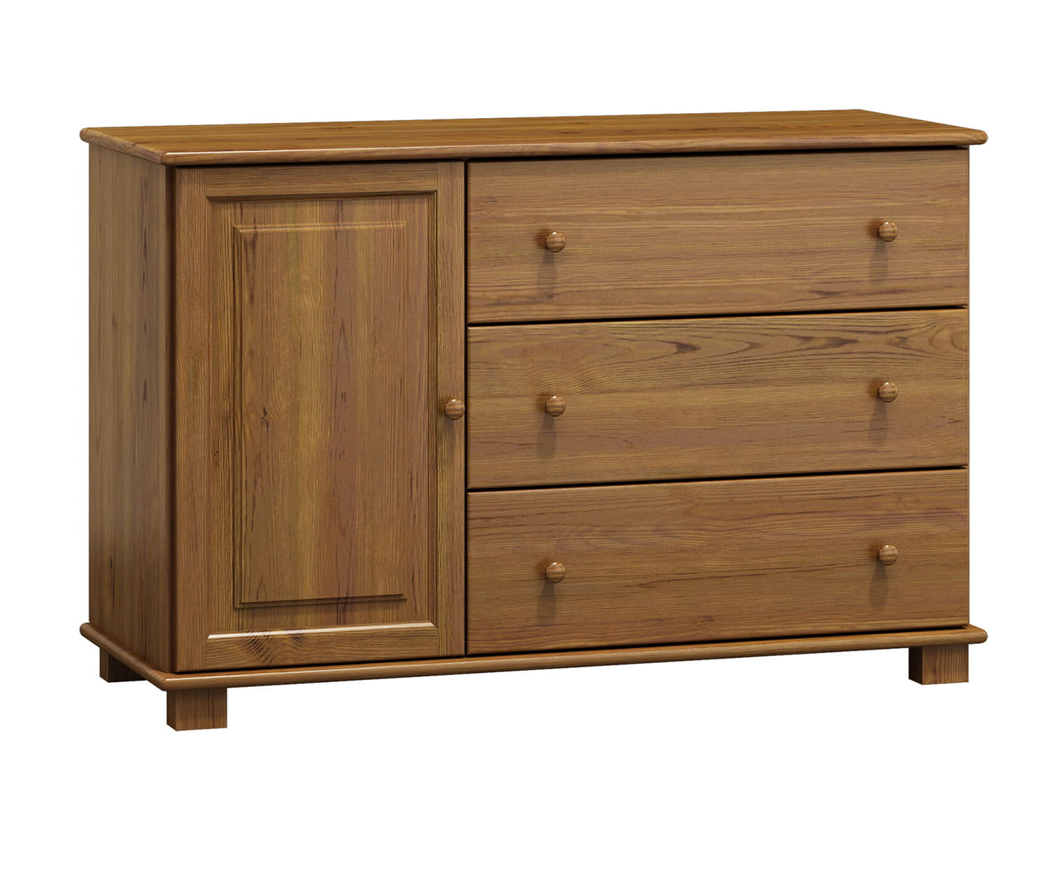 Komoda č35 hloubka 47 je zhotovena z borovicového dřeva, díky čemu má odolnou konstrukci. Ergonomický tvar umožní uschovat věci a udržovat pořádek. Díky kolejnicím se zásuvky vysunují velmi lehce a přispívají tak k pohodlnému používání. Svým minimalistickým designem se hodí do klasického i moderního interiéru. Kus nábytku z přírodního dřeva působí jako vkusný dekorační prvek. Nábytek je vyroben z borovicového dřeva nejlepší kvality a natřen 3 vrstvami ekologického laku. Jako jedni z mála používáme při výrobě laky, které mají certifikát Státní hygienické stanice. Laky, které používáme, jsou schváleny pro použití na předmětech, s kterými přicházejí do styku děti (shoda s normou DIN EN 71, č. 3). Výrobek je dodáván v balících a je určen pro samostatnou montáž. |