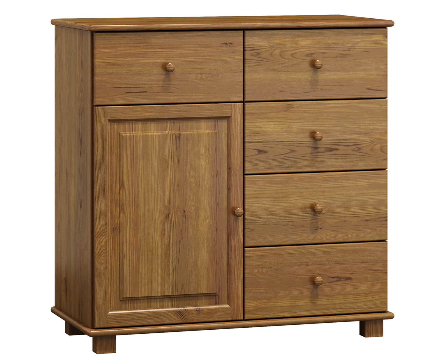 Komoda č47 hloubka 42 je zhotovena z borovicového dřeva, díky čemu má odolnou konstrukci. Ergonomický tvar umožní uschovat věci a udržovat pořádek. Díky kolejnicím se zásuvky vysunují velmi lehce a přispívají tak k pohodlnému používání. Svým minimalistickým designem se hodí do klasického i moderního interiéru. Kus nábytku z přírodního dřeva působí jako vkusný dekorační prvek. Nábytek je vyroben z borovicového dřeva nejlepší kvality a natřen 3 vrstvami ekologického laku. Jako jedni z mála používáme při výrobě laky, které mají certifikát Státní hygienické stanice. Laky, které používáme, jsou schváleny pro použití na předmětech, s kterými přicházejí do styku děti (shoda s normou DIN EN 71, č. 3). Výrobek je dodáván v balících a je určen pro samostatnou montáž. |