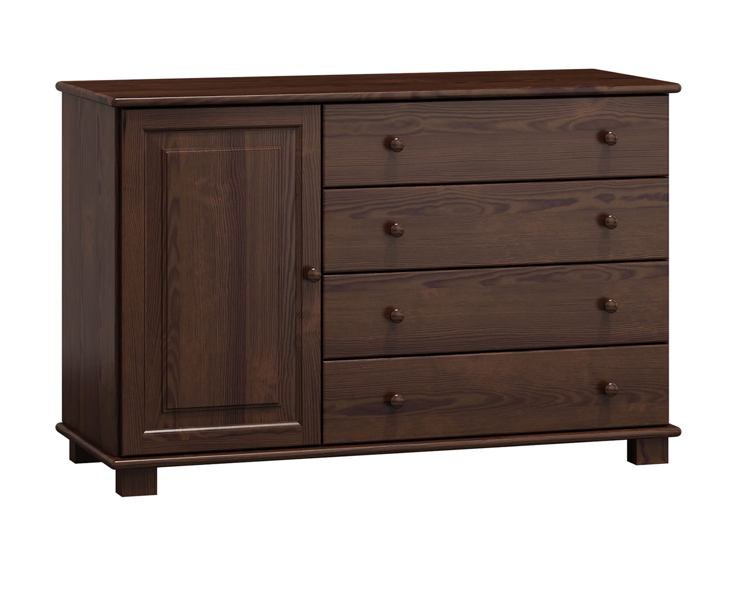 Komoda č34 hloubka 42 je zhotovena z borovicového dřeva, díky čemu má odolnou konstrukci. Ergonomický tvar umožní uschovat věci a udržovat pořádek. Díky kolejnicím se zásuvky vysunují velmi lehce a přispívají tak k pohodlnému používání. Svým minimalistickým designem se hodí do klasického i moderního interiéru. Kus nábytku z přírodního dřeva působí jako vkusný dekorační prvek. Nábytek je vyroben z borovicového dřeva nejlepší kvality a natřen 3 vrstvami ekologického laku. Jako jedni z mála používáme při výrobě laky, které mají certifikát Státní hygienické stanice. Laky, které používáme, jsou schváleny pro použití na předmětech, s kterými přicházejí do styku děti (shoda s normou DIN EN 71, č. 3). Výrobek je dodáván v balících a je určen pro samostatnou montáž. |