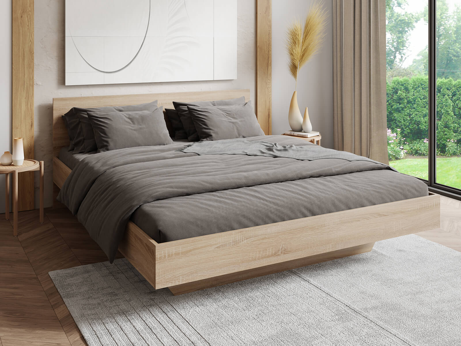 Levitujúca posteľ 140x200 z nábytkovej dosky, dub sonoma DM2