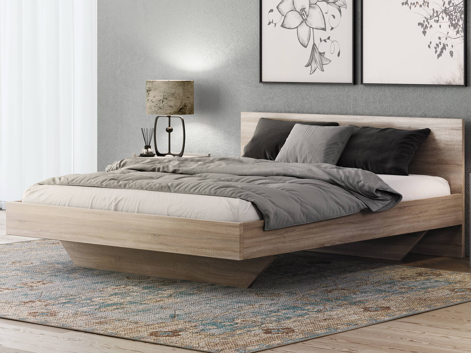 Levitujúca posteľ 160x200 z nábytkovej dosky, dub sonoma DM2