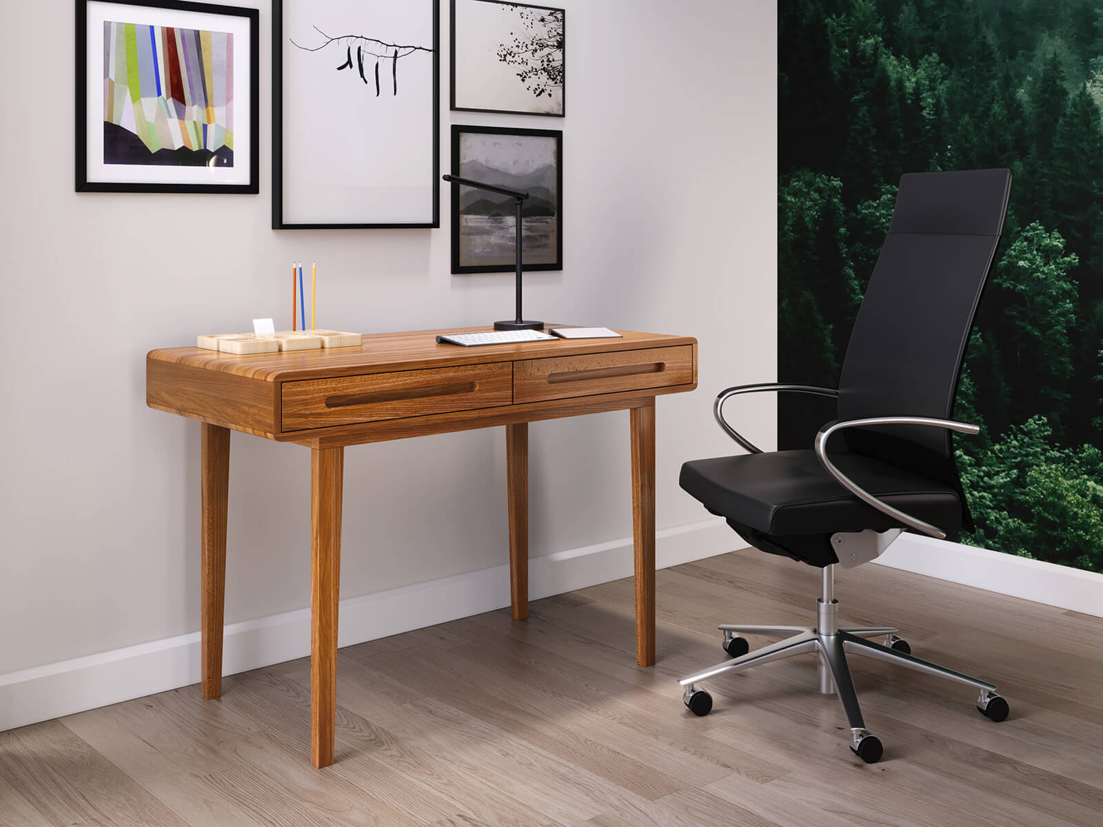 Bukový písací stôl je zároveň elegantným toaletným stolíkom alebo štýlovou konzolou, ktorá sa prispôsobí vašim potrebám. Jednoduchý, ale elegantný dizajn písacieho stola, stojaceho na rovných vysokých nohách, dodáva nábytku ľahkosť a jedinečný charakter. Bez ohľadu na to, či ho používate ako miesto na uskladnenie, starostlivosť alebo prácu, vždy sa môžete spoľahnúť na jeho odolnosť a jedinečný štýl.