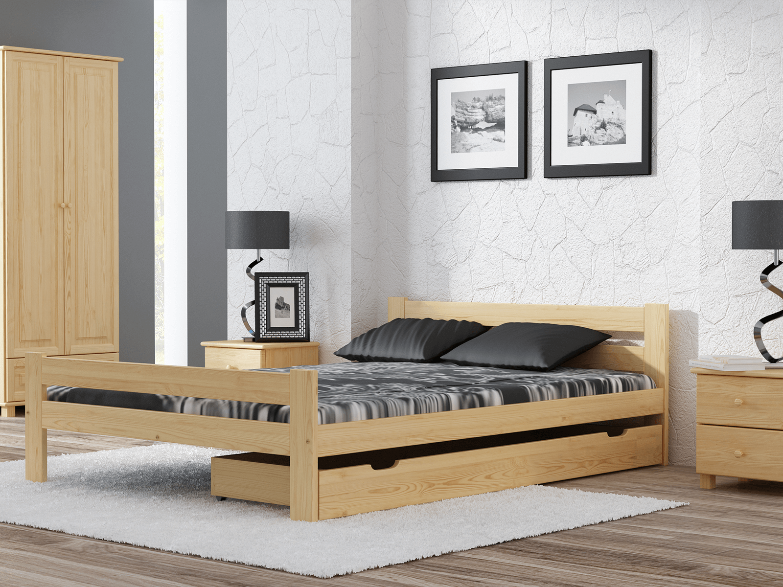Sada obsahuje pružný rošt, vyrobený z 12 lamiel z brezového dreva spojených látkovou páskou. Tento nábytok je vyrobený z borovicového dreva najvyššej kvality s 3 krát vykonávaným náterom ekologickými farbami. Ako jedni z mála používame pre lakovanie náterové hmoty s atestom Národného ústavu hygieny. Naše laky majú povolenie užívania na predmety, s ktorými prichádzajú do kontaktu deti. (Súlad s normou DIN EN 71, sk. 3). Tento výrobok je dodávaný v balení pre samostatnú montáž.