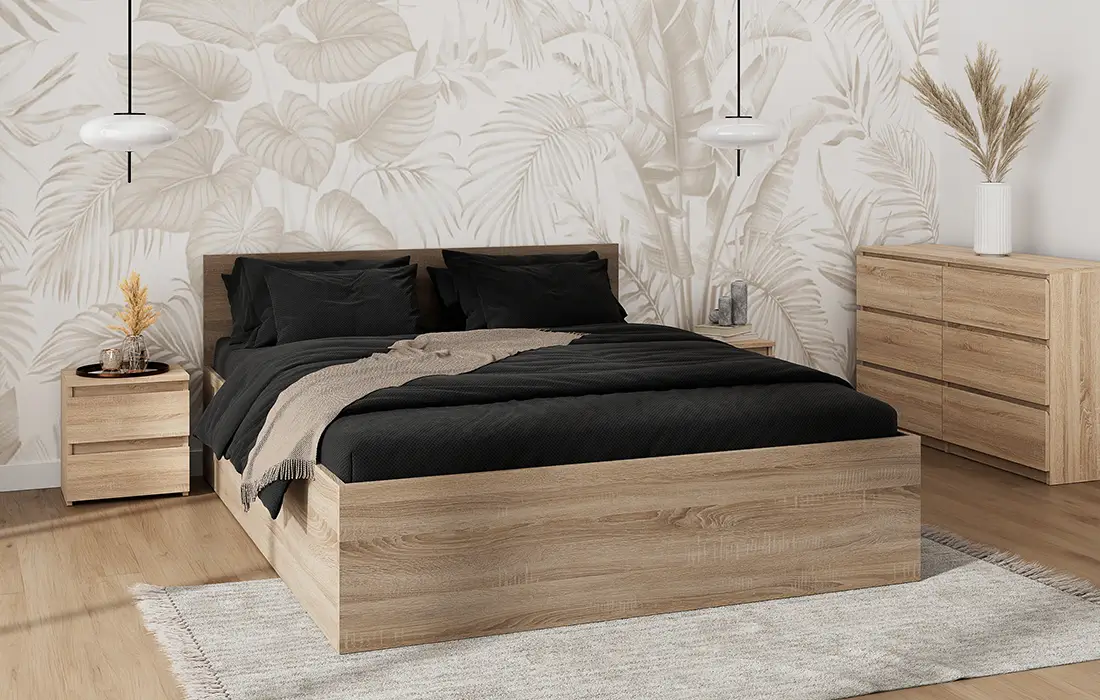 Viď popis produktuPosteľ DM1 vo farbe duba sonoma je moderný a funkčný nábytok vyrobený z odolnej nábytkovej dosky, ktorý sa vyznačuje jednoduchou, minimalistickou formou. Svetlý odtieň prináša do interiéru moderný a štýlový charakter a ideálne sa hodí k rôznym štýlom zariadenia. Pevná a bezpečná konštrukcia a pohodlné čelo postele zabezpečujú komfort pri používaní, zatiaľ čo univerzálny dizajn umožňuje, aby sa posteľ výborne hodila do spálne, detskej izby či hosťovskej izby. Je to praktické riešenie pre ľudí, ktorí oceňujú spojenie estetiky a odolnosti. Kompaktné rozmery postele ju robia ideálnou voľbou aj do menších priestorov bez straty funkčnosti. Stabilita konštrukcie a precízne spracovanie zabezpečujú bezpečné používanie aj pri intenzívnom využívaní. Prírodný drevodekorový povrch je nielen estetický, ale aj ľahko udržiavateľný, čo umožňuje zachovať nábytok v perfektnom stave po dlhý čas. Posteľ DM1 predstavuje spojenie klasickej elegancie s moderným prístupom ku komfortu a praktickosti.