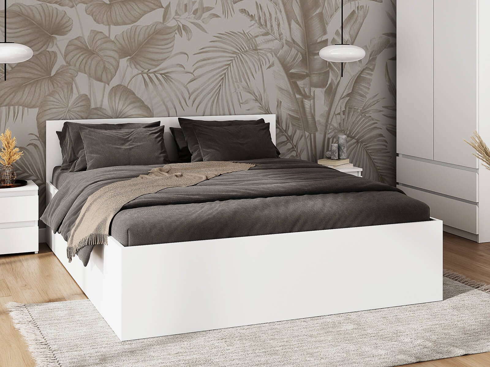 Odolnosť a stabilita: Vyrobená z kvalitnej nábytkovej dosky, posteľ DM1 poskytuje pevnú konštrukciu odolnú voči každodennému používaniu.