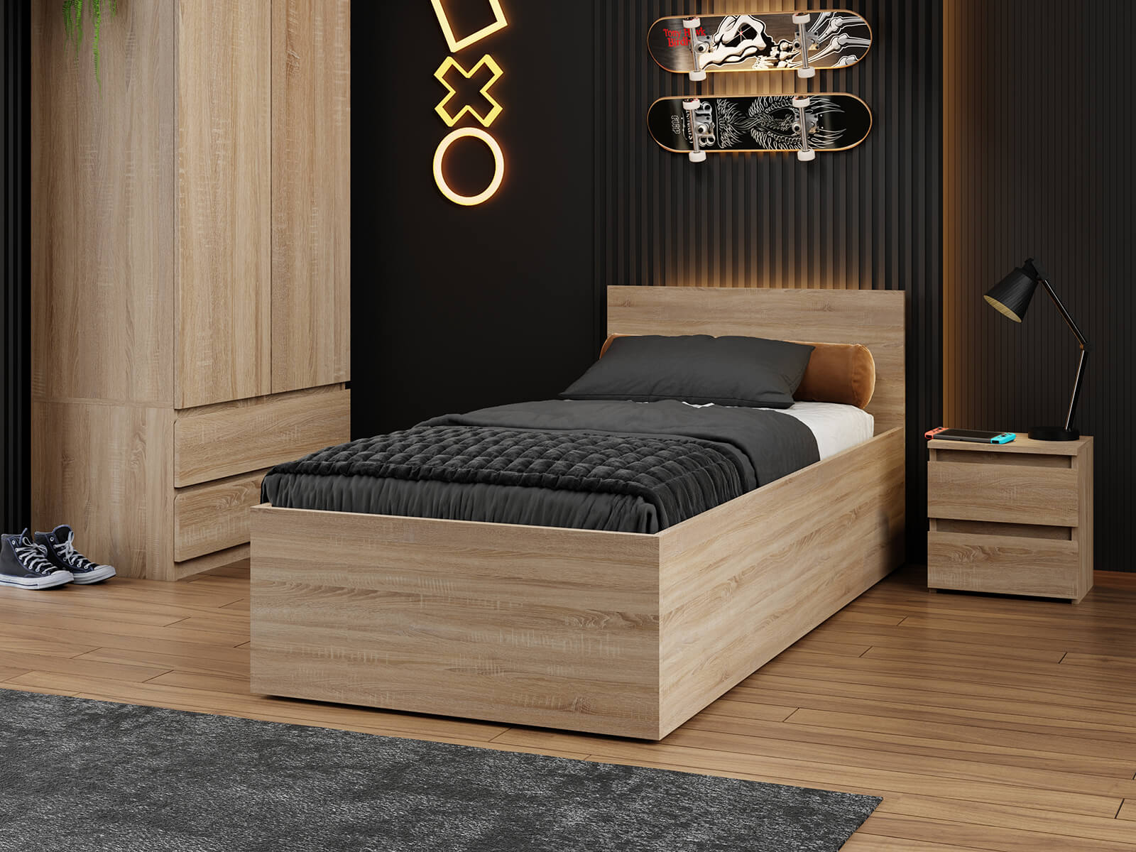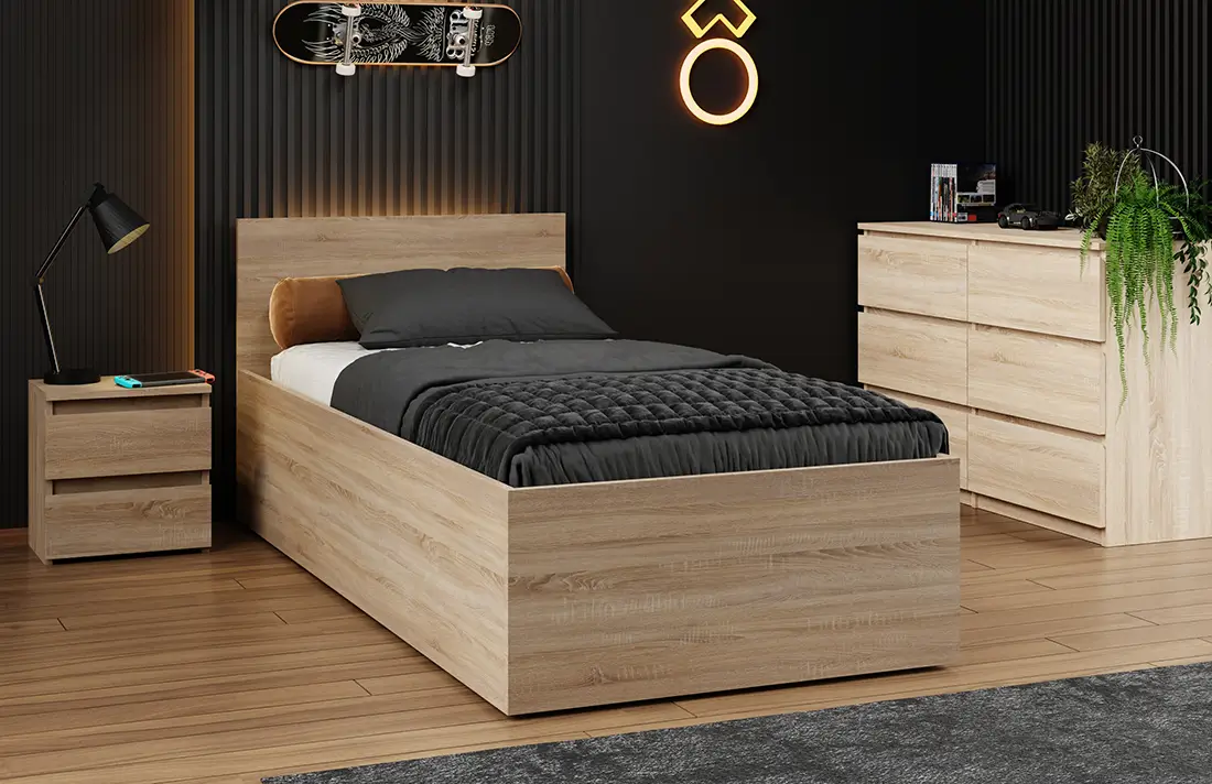 Odolnosť a stabilita: Vyrobená z kvalitnej nábytkovej dosky, posteľ DM1 poskytuje pevnú konštrukciu odolnú voči každodennému používaniu.