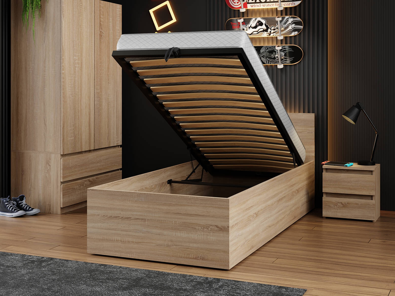 Posteľ DM1 90x200 Sonoma s roštom a úložným priestorom