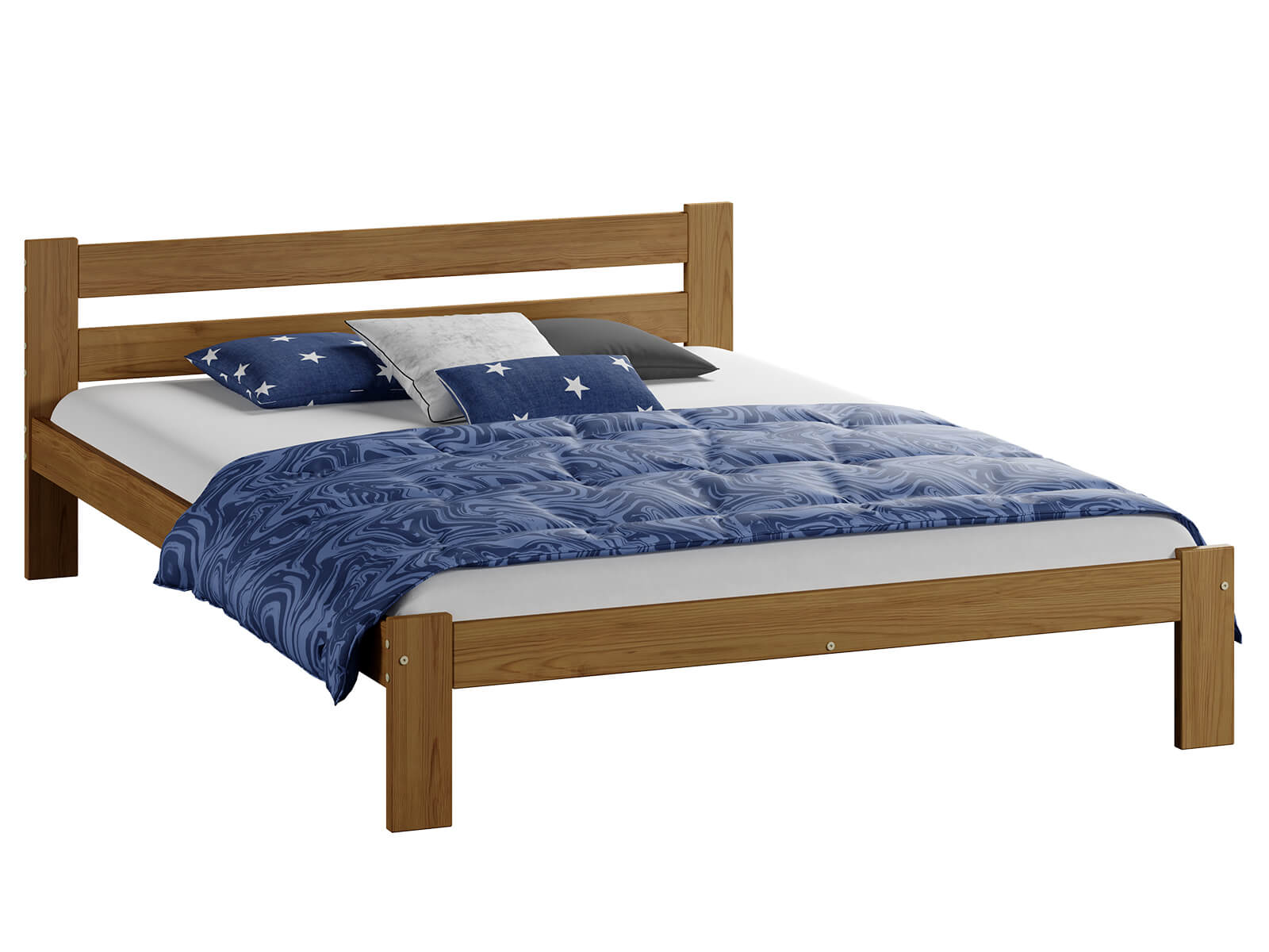 Sada obsahuje pružný rošt, vyrobený z 12 lamiel z brezového dreva spojených látkovou páskou. Tento nábytok je vyrobený z borovicového dreva najvyššej kvality s 3 krát vykonávaným náterom ekologickými farbami. Ako jedni z mála používame pre lakovanie náterové hmoty s atestom Národného ústavu hygieny. Naše laky majú povolenie užívania na predmety, s ktorými prichádzajú do kontaktu deti. (Súlad s normou DIN EN 71, sk. 3). Tento výrobok je dodávaný v balení pre samostatnú montáž.