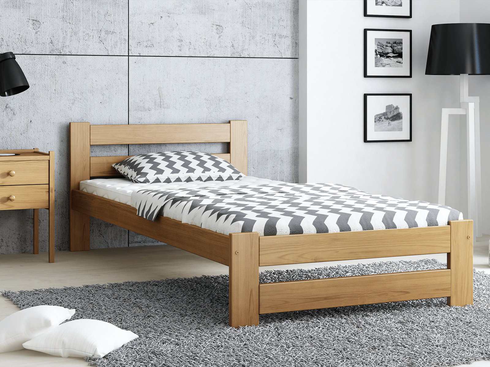 Sada obsahuje pružný rošt, vyrobený z 12 lamiel z brezového dreva spojených látkovou páskou. Tento nábytok je vyrobený z borovicového dreva najvyššej kvality s 3 krát vykonávaným náterom ekologickými farbami. Ako jedni z mála používame pre lakovanie náterové hmoty s atestom Národného ústavu hygieny. Naše laky majú povolenie užívania na predmety, s ktorými prichádzajú do kontaktu deti. (Súlad s normou DIN EN 71, sk. 3). Tento výrobok je dodávaný v balení pre samostatnú montáž.