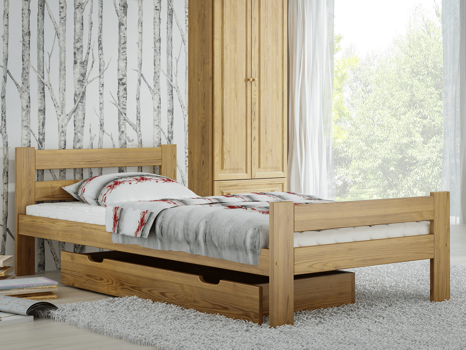 Sada obsahuje pružný rošt, vyrobený z 12 lamiel z brezového dreva spojených látkovou páskou. Tento nábytok je vyrobený z borovicového dreva najvyššej kvality s 3 krát vykonávaným náterom ekologickými farbami. Ako jedni z mála používame pre lakovanie náterové hmoty s atestom Národného ústavu hygieny. Naše laky majú povolenie užívania na predmety, s ktorými prichádzajú do kontaktu deti. (Súlad s normou DIN EN 71, sk. 3). Tento výrobok je dodávaný v balení pre samostatnú montáž.