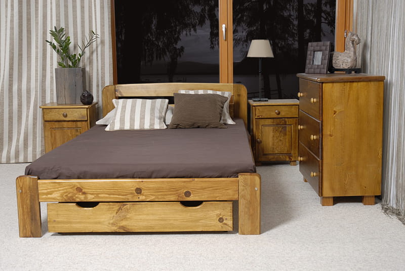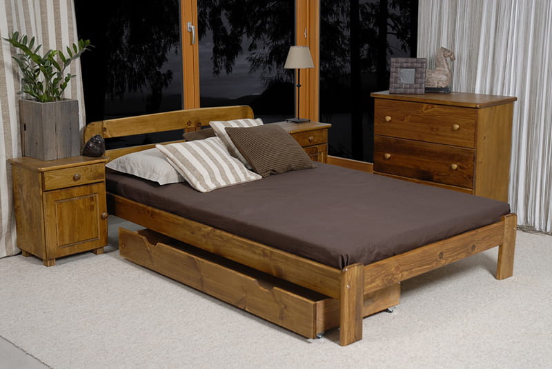 Tento nábytok je vyrobený z borovicového dreva najvyššej kvality s 3 krát vykonávaným náterom ekologickými farbami. Ako jedni z mála používame pre lakovanie náterové hmoty s atestom Národného ústavu hygieny. Naše laky majú povolenie užívania na predmety, s ktorými prichádzajú do kontaktu deti. (Súlad s normou DIN EN 71, sk. 3).