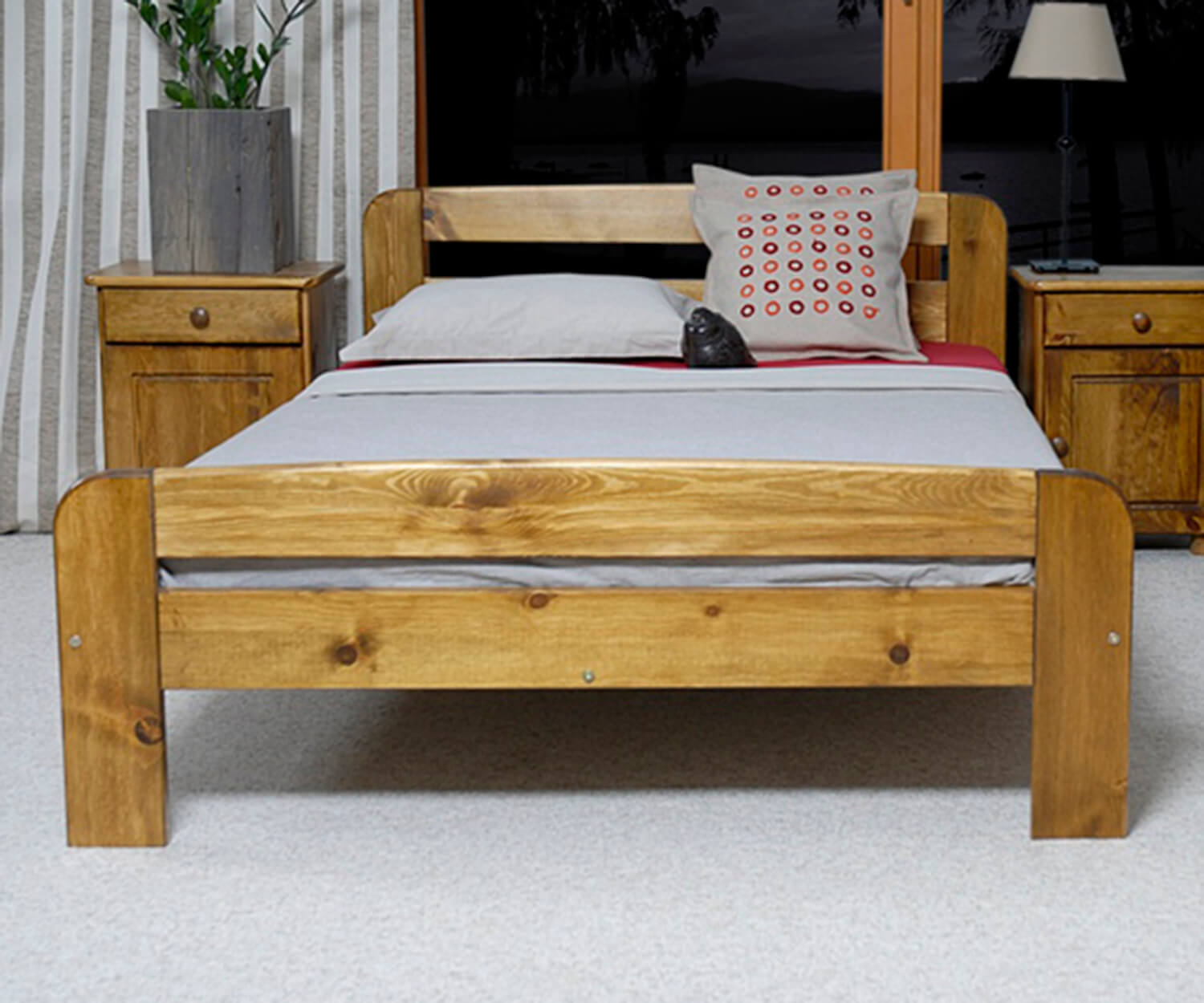 Viď popis produktuPosteľ Nastěnka je vyrobená výhradne z prírodného borovicového dreva, ktoré zaisťuje pevnú konštrukciu. Minimalistická forma sa dokonale integruje s klasickým alebo moderným riešením vnútorných priestorov. Nábytok dokonale spája eleganciu a pohodu, zabezpečujúc spálni univerzálny charakter. Jednoduchý dizajn dodáva miestnosti dekoratívny akcent, pri zachovaní ľahkej údržby. Model Nastěnka prináša do miestnosti harmóniu a ideálne podmienky pre relaxáciu.