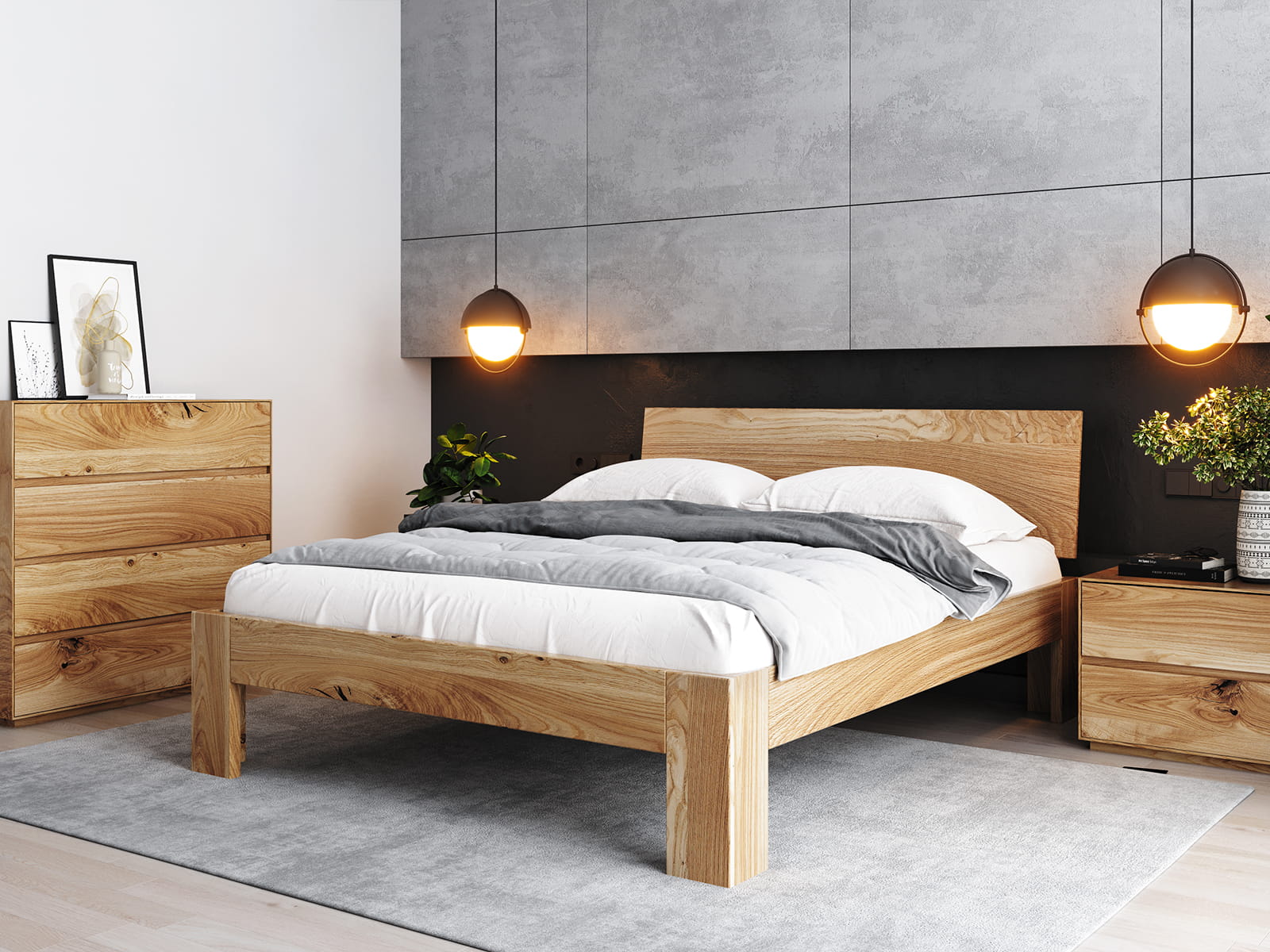 Táto jedinečná posteľ Rosario z masívneho dubového dreva poteší svojou prirodzenosťou a nadčasovou eleganciou. Rám postele stojí na stabilných masívnych nohách. Obrátené nohy opticky odľahčujú masívnu konštrukciu a vytvárajú dojem postele zavesenej vo vzduchu. Operadlo je pripevnené k rámu postele pomocou kovových držiakov. Drevo je ušľachtilý materiál, ktorý krásne starne. Okrem toho je bezkonkurenčný, pokiaľ ide o štruktúru a farbu, ktoré mu dodávajú jedinečný charakter.