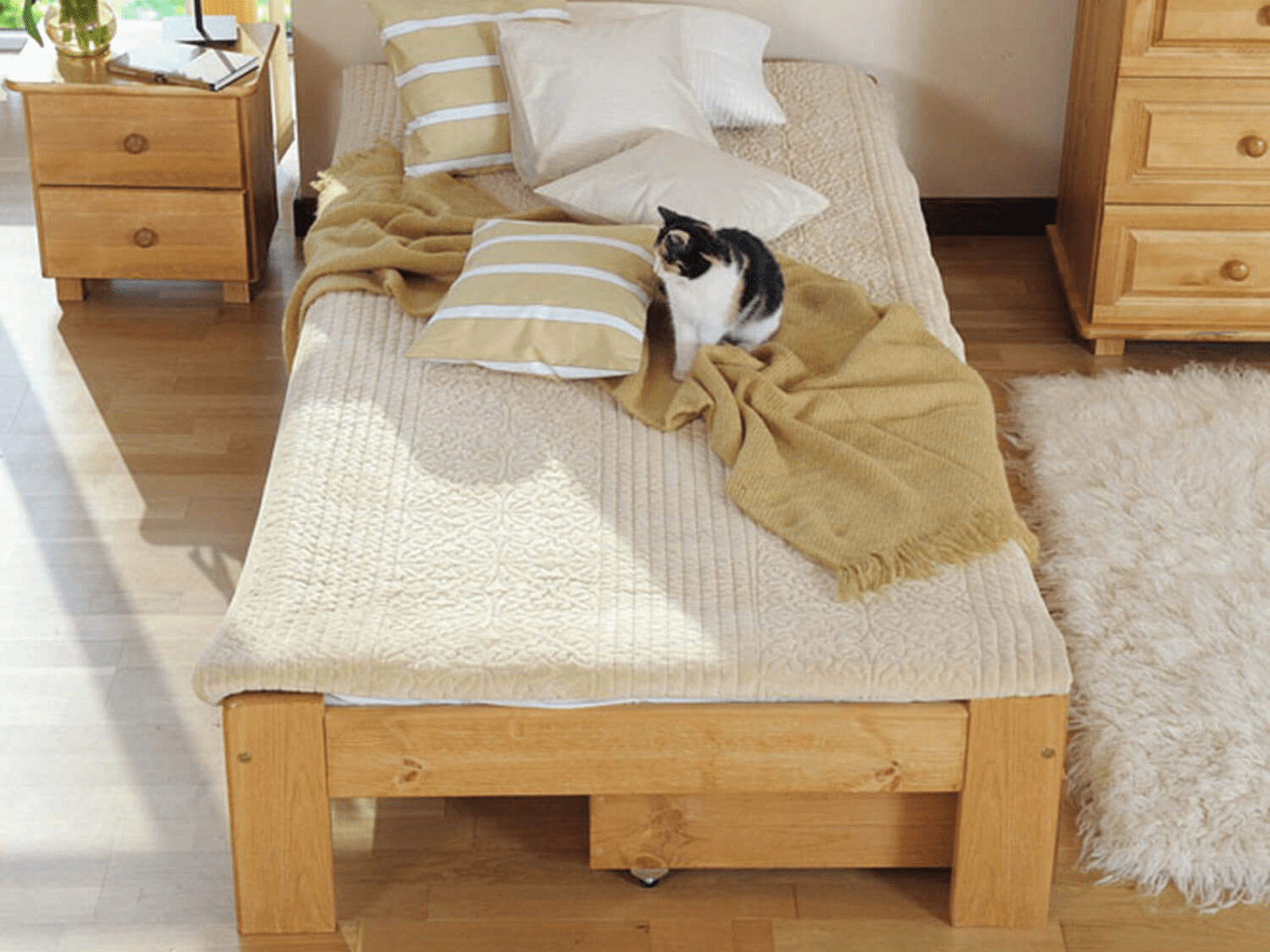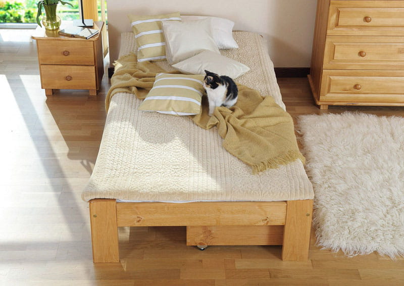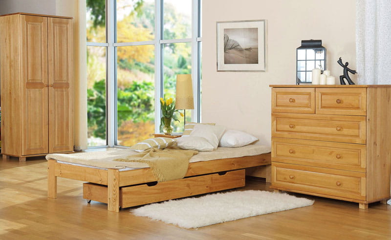Tento nábytok je vyrobený z borovicového dreva najvyššej kvality s 3 krát vykonávaným náterom ekologickými farbami. Ako jedni z mála používame pre lakovanie náterové hmoty s atestom Národného ústavu hygieny. Naše laky majú povolenie užívania na predmety, s ktorými prichádzajú do kontaktu deti. (Súlad s normou DIN EN 71, sk. 3).