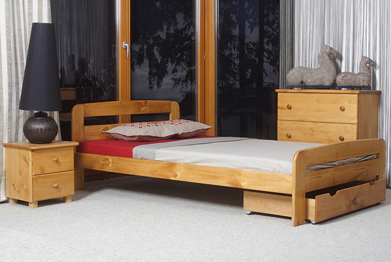 Tento nábytok je vyrobený z borovicového dreva najvyššej kvality s 3 krát vykonávaným náterom ekologickými farbami. Ako jedni z mála používame pre lakovanie náterové hmoty s atestom Národného ústavu hygieny. Naše laky majú povolenie užívania na predmety, s ktorými prichádzajú do kontaktu deti. (Súlad s normou DIN EN 71, sk. 3).