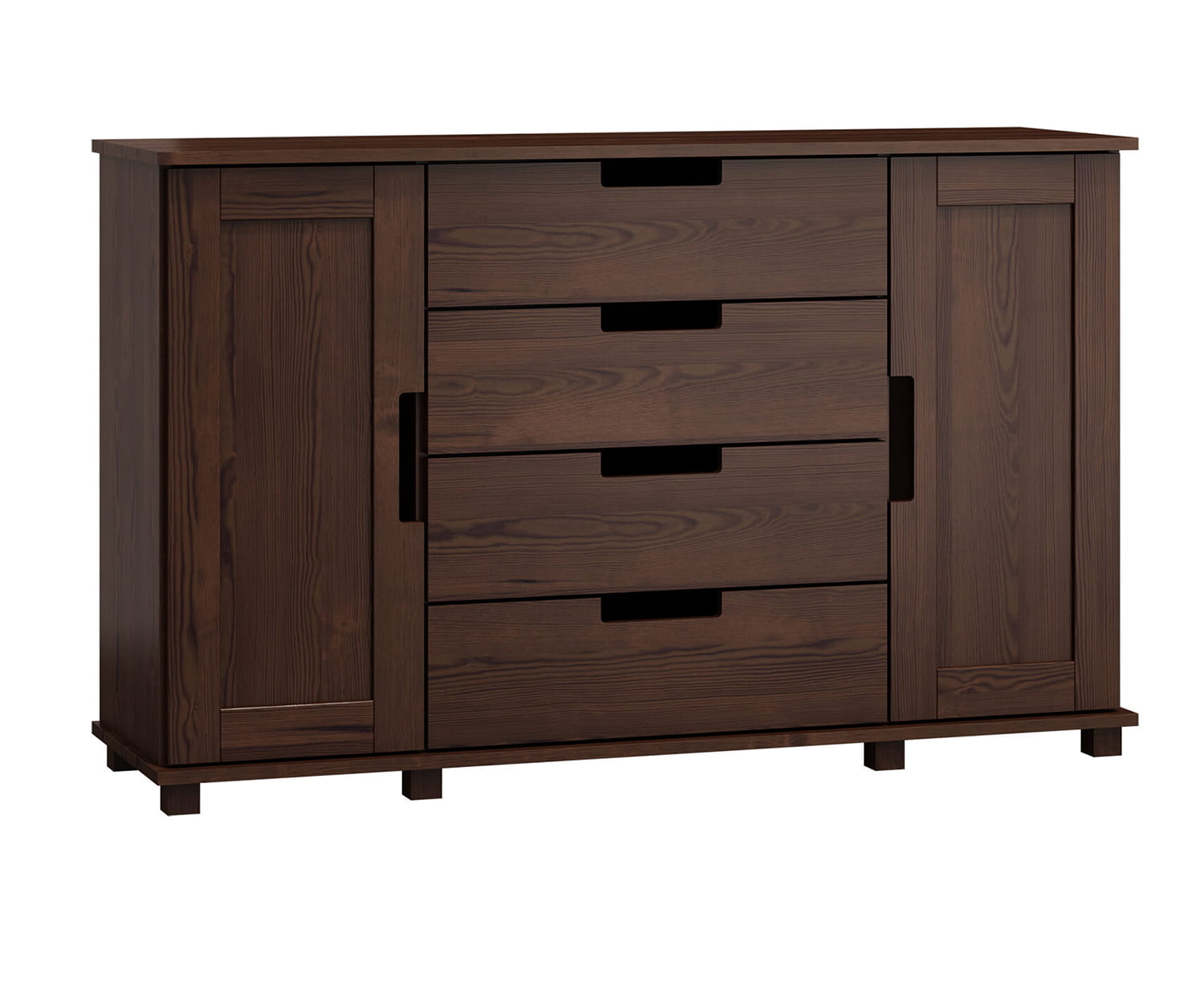| Řada modern – nábytek se vyznačuje inovativním designem, který padne do gusta milovníkům moderního vzhledu interiérů. Komody se těší popularitou vzhledem k jednoduchosti uchovávání oblečení nebo jiných předmětů. Dřevěné komody jsou vhodné pro denní používání a poskytují místnosti jedinečný charakter. Komoda č. 4 je model vyrobený z borovicového dřeva. Nekonvenční tvar tohoto kusu nábytku stylově doplní interiér. Čtyři prostorné zásuvky umožní ukládání velkého množství předmětů při současném udržení pořádku. V každé skříni jsou 2 poličky, které navíc umožní uklidit všechny věci. Nábytek určený pro samostatnou montáž. |