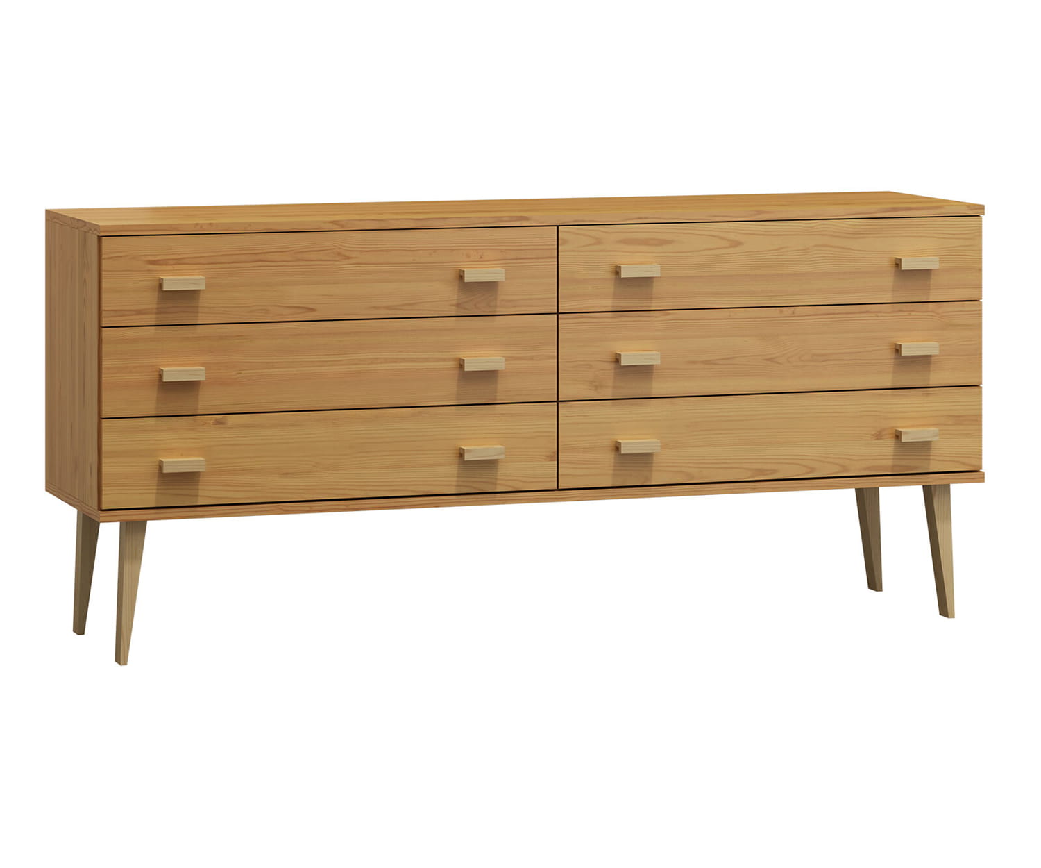 Komoda č6 hloubka 42 je zhotovena z borovicového dřeva, díky čemu má odolnou konstrukci. Ergonomický tvar umožní uschovat věci a udržovat pořádek. Díky kolejnicím se zásuvky vysunují velmi lehce a přispívají tak k pohodlnému používání. Svým minimalistickým designem se hodí do klasického i moderního interiéru. Kus nábytku z přírodního dřeva působí jako vkusný dekorační prvek. Nábytek je vyroben z borovicového dřeva nejlepší kvality a natřen 3 vrstvami ekologického laku. Jako jedni z mála používáme při výrobě laky, které mají certifikát Státní hygienické stanice. Laky, které používáme, jsou schváleny pro použití na předmětech, s kterými přicházejí do styku děti (shoda s normou DIN EN 71, č. 3). Výrobek je dodáván v balících a je určen pro samostatnou montáž. |