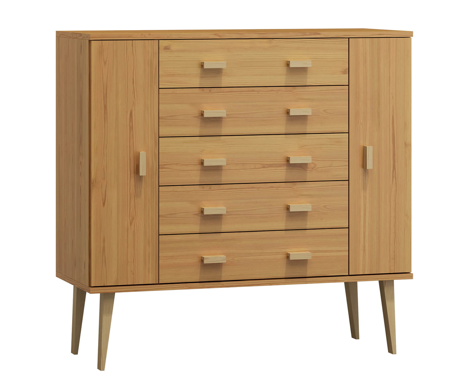 Komoda č6 hloubka 42 je zhotovena z borovicového dřeva, díky čemu má odolnou konstrukci. Ergonomický tvar umožní uschovat věci a udržovat pořádek. Díky kolejnicím se zásuvky vysunují velmi lehce a přispívají tak k pohodlnému používání. Svým minimalistickým designem se hodí do klasického i moderního interiéru. Kus nábytku z přírodního dřeva působí jako vkusný dekorační prvek. Nábytek je vyroben z borovicového dřeva nejlepší kvality a natřen 3 vrstvami ekologického laku. Jako jedni z mála používáme při výrobě laky, které mají certifikát Státní hygienické stanice. Laky, které používáme, jsou schváleny pro použití na předmětech, s kterými přicházejí do styku děti (shoda s normou DIN EN 71, č. 3). Výrobek je dodáván v balících a je určen pro samostatnou montáž. |