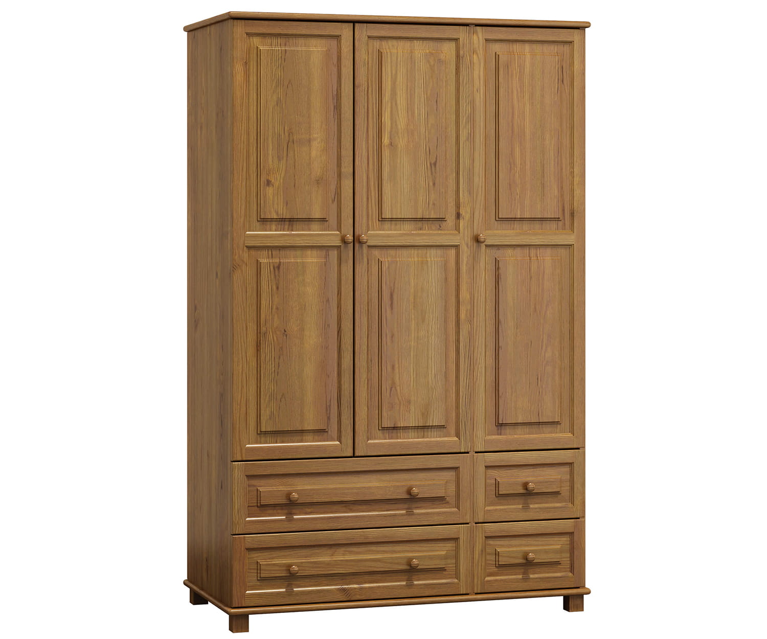 Skříň 3Dč3 šířka 133 má díky použití borovicového dřeva odolnou a stabilní konstrukci. Nábytek je vyroben z borovicového dřeva nejlepší kvality a natřen 3 vrstvami ekologického laku. Jako jedni z mála používáme při výrobě laky, které mají certifikát Státní hygienické stanice. Laky, které používáme, jsou schváleny pro použití na předmětech, s kterými přicházejí do styku děti (shoda s normou DIN EN 71, č. 3). Výrobek je dodáván v balících a je určen pro samostatnou montáž. |