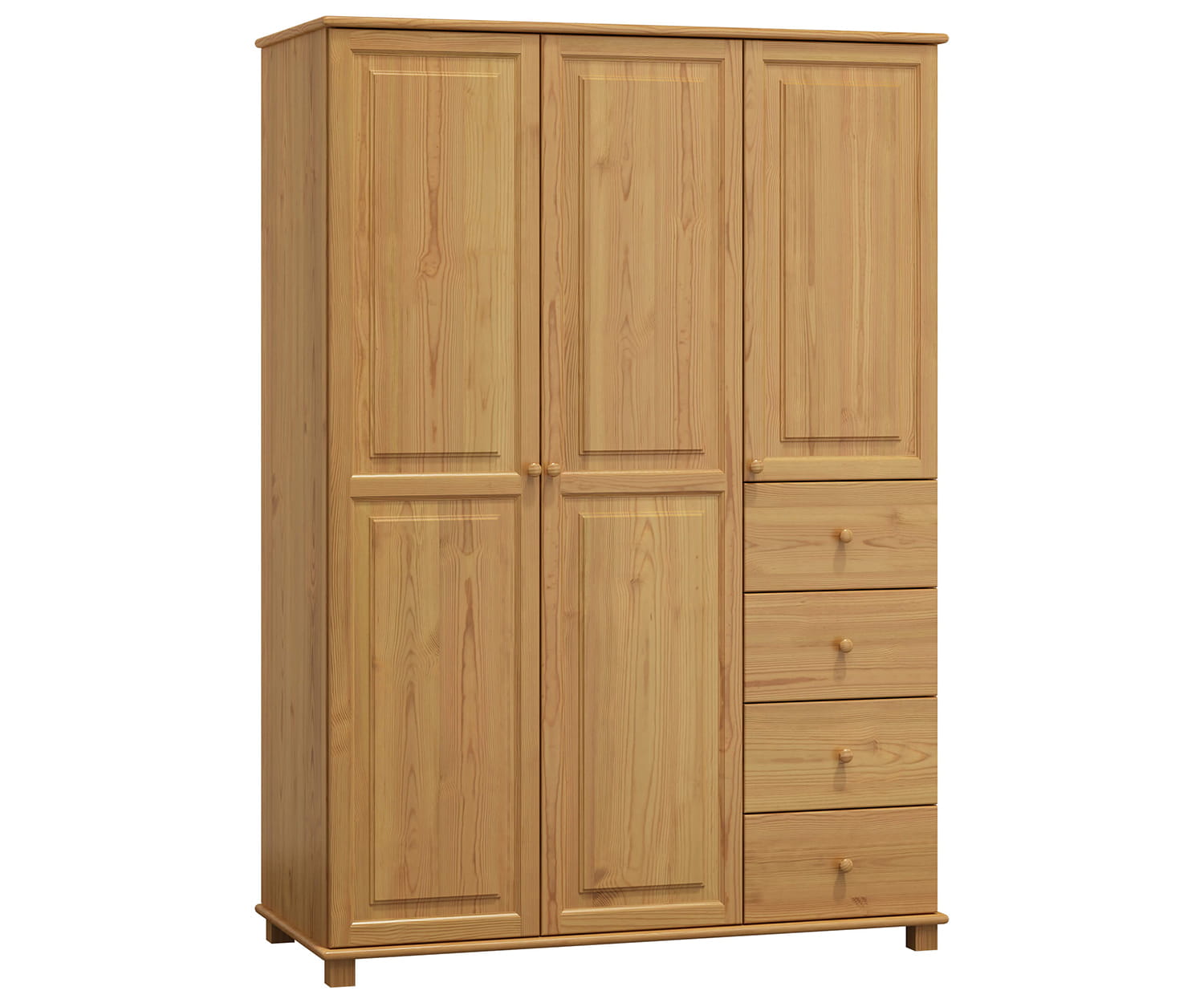 Skříň 3Dč4 šířka 133 má díky použití borovicového dřeva odolnou a stabilní konstrukci. Nábytek je vyroben z borovicového dřeva nejlepší kvality a natřen 3 vrstvami ekologického laku. Jako jedni z mála používáme při výrobě laky, které mají certifikát Státní hygienické stanice. Laky, které používáme, jsou schváleny pro použití na předmětech, s kterými přicházejí do styku děti (shoda s normou DIN EN 71, č. 3). Výrobek je dodáván v balících a je určen pro samostatnou montáž. |