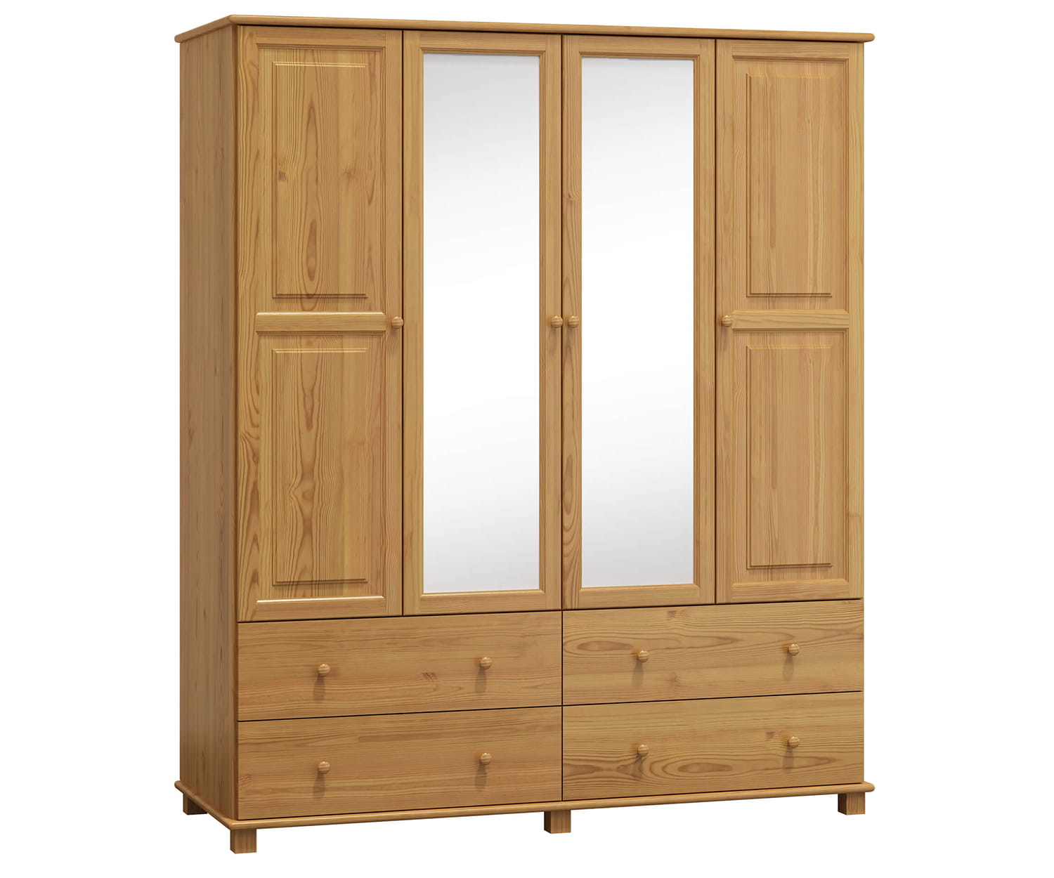 Skříň 4Dč4 šířka 180 má díky použití borovicového dřeva odolnou a stabilní konstrukci. Nábytek je vyroben z borovicového dřeva nejlepší kvality a natřen 3 vrstvami ekologického laku. Jako jedni z mála používáme při výrobě laky, které mají certifikát Státní hygienické stanice. Laky, které používáme, jsou schváleny pro použití na předmětech, s kterými přicházejí do styku děti (shoda s normou DIN EN 71, č. 3). Výrobek je dodáván v balících a je určen pro samostatnou montáž. |